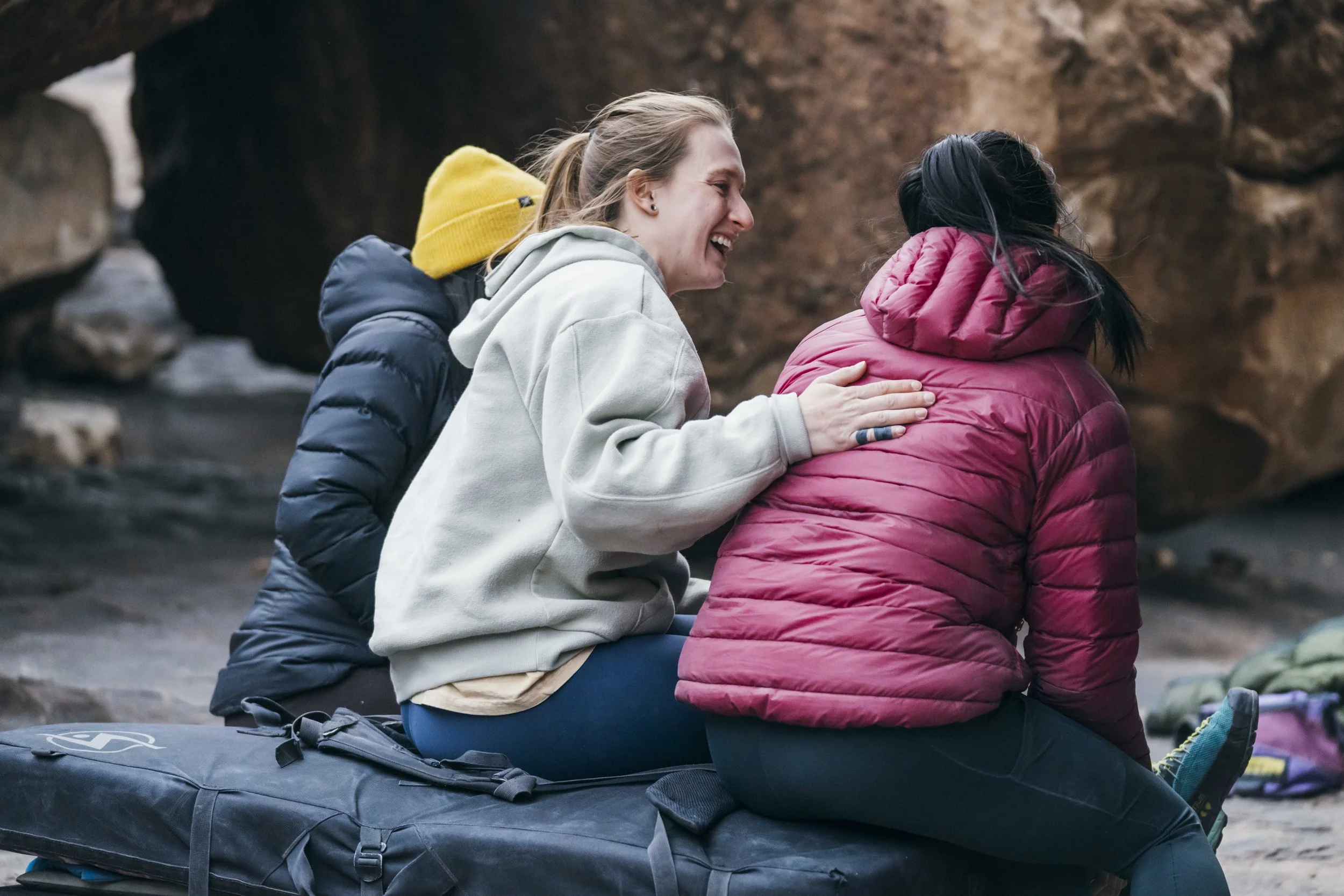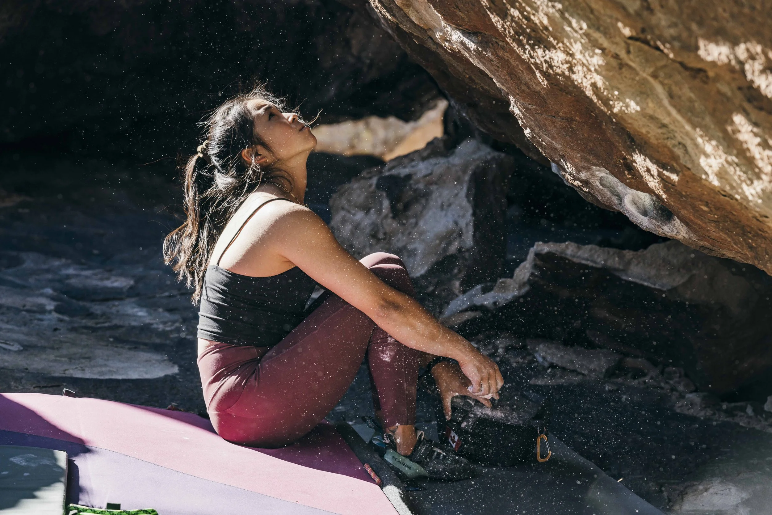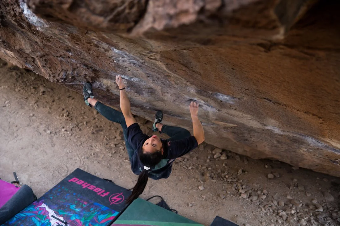 Featured as one of five climbers in the first all females feature length bouldering film. The project brought together women from across the U.S. and Canada to explore the particular energy that surfaces when strong climbers gather without apology. The film rejected the idea of a single "climber archetype," instead showcasing how background, style, and approach vary wildly among us. We spent a week in the high desert, trading beta between burns, filming in light that made the sandstone glow. What emerged wasn't just a climbing film - it was a document of building safe spaces and role-model culture, proving there's no one way to be a climber.